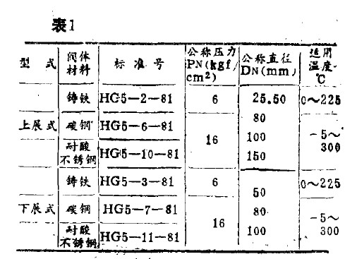 截止型放料閥是目前的4準(zhǔn)放料閥,1967年起編入化工部部頒標(biāo)準(zhǔn),它是直接安裝于反應(yīng)釜底部的專用放料閥門,其關(guān)閉件一一閥瓣是沿放料口通道中心線作上下移動的,按其開啟時(shí)的閥瓣運(yùn)動方向不同,分為上展式和下展式二種,不論是上展式或下展式,在關(guān)閉狀態(tài)時(shí),都能使閥瓣頂面與釜底面大致吻合,不存在沉積料液的死角。圖1為下展式放料閥的裝配簡圖,此類放料閥按化工部標(biāo)準(zhǔn),閥體可采用鑄鐵、鑄鋼和耐酸不銹鋼三種材質(zhì),其中耐酸不銹鋼放料閻按制造工藝又分成鑄造閥休和焊接閥體兩種形式。上述主要型式的標(biāo)準(zhǔn)號性能參數(shù)見表1。