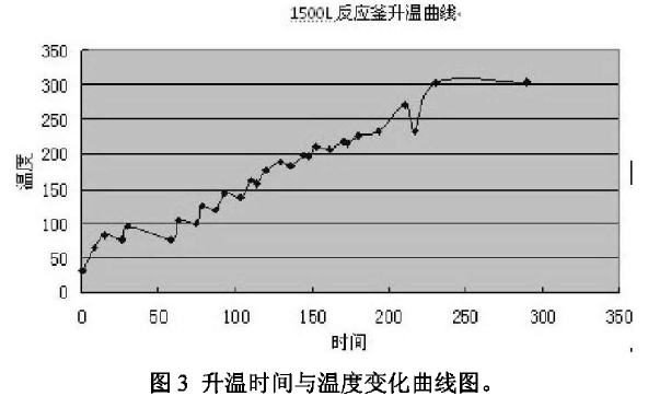 通電升溫,反應(yīng)釜內(nèi)由初始溫度升溫至350℃,然后恒溫lh,關(guān)閉電源,使其自然降溫,加熱恒溫總耗時為220min。具體升溫時間與溫度變化見圖3。
